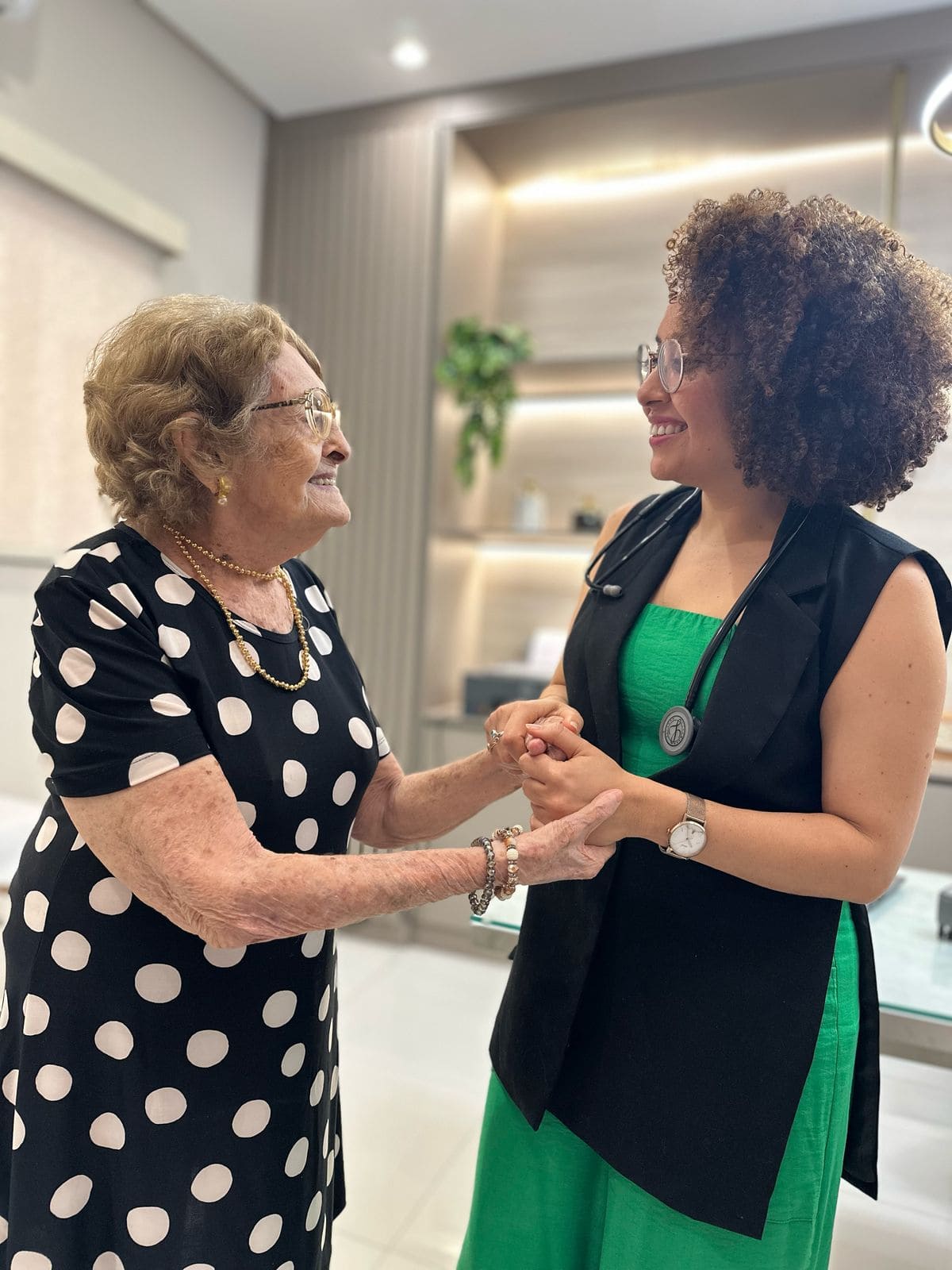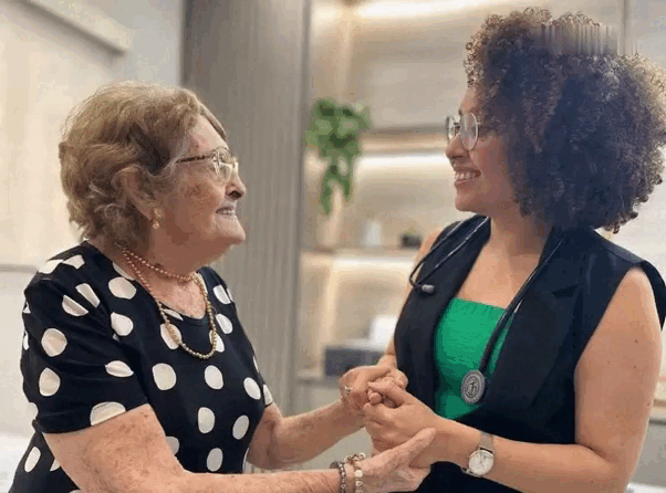 Sou maranhense, filha da dona Dalva e do seu Joaquim, e irmã do Pedro e da Mônica. Passei minha infância no Maranhão, uma terra que carrego no coração até hoje. Dos 11 aos 14 anos, morei com minha avó — foram anos de muito afeto e convivência que, sem dúvida, plantaram em mim o amor pelo cuidado, que mais tarde me guiaria na escolha da Geriatria como especialidade.